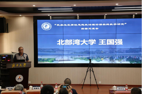 王国强院长介绍了北部湾大学开展思想政治理论课实践教学的特色经验。一是做好思想政治理论课实践教学的多重结合,把实践教学与宣传育人结合起来、思想政治教育活动与大学生社团活动结合起来,实现实践教学效益扩大化;二是做好思想政治理论课实践教学成果的评估和归档,思政课老师每学期将学生实践教学的资料按照微视频、小品、歌曲、诗歌、党史故事等分门别类,以班级为单位汇编成册,以供总结查阅。