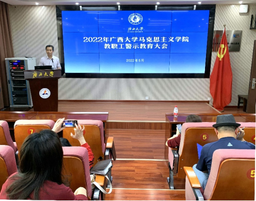 2022年5月17日,学院党委召开了警示教育大会,全体教职员工和博士研究生参加了大会。会上,周瑞超书记强调了酒驾醉驾的严重后果,提醒大家务必筑牢自身意识。并以酒驾醉驾警示为契机,对师德师风、安全稳定、意识形态,特别对在网络空间的观点表达等方面也进行了强调和警示教育,要求老师们增强“四个意识”、坚定“四个自信”、做到“两个维护”,以“德高为师、身正为范”为警醒,维护好教师的形象和声誉。