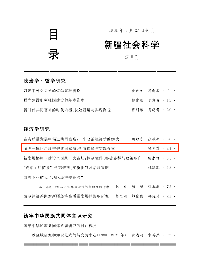 外围买球app官网教师张笑菡在《新疆社会科学》(2022年第4期)上发表理论文章《城乡一体化治理推进共同富裕:价值选择与实践探索》。《新疆社会科学》杂志是由中华人民共和国新闻出版总署、正式批准公开发行的优秀期刊。该刊物主要发表研究中国少数民族地区、中国经济不发达地区,以及新疆社会经济发展中重大现实和理论问题的优秀论文,下设经济理论与实践、科学社会主义、民族与宗教研究、法学研究等栏目。