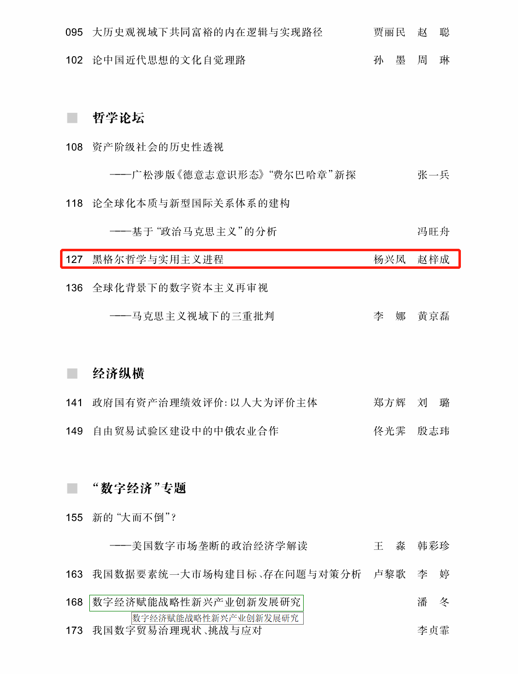 外围买球app官网杨兴凤副教授、硕士研究生赵梓成在《理论探讨》(2022年第5期)上发表理论文章《黑格尔哲学与实用主义进程》。《理论探讨》系中共 黑龙江省委党校主办、面向国内外公开发行的综合性学术理论期刊。它以马克思列宁主义、毛泽东思想、邓小平理论和“三个代表”重要思想为指导,深入贯彻科学发展观,坚持理论联系实际,关注社会科学的发展,反映各学科研究的前沿和热点,研究和探讨在建设中国特色社会主义实践中提出的各种理论问题,为改革开放和社会主义现代化建设服务。