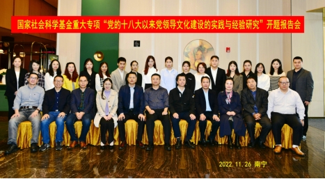 2022年11月26日,由外围买球的app十大平台梁建新教授任首席专家的研究阐释党的十九届六中全会精神国家社会科学基金重大项目“党的十八大以来党领导文化建设的实践与经验研究”开题报告会在广西南宁成功举行。