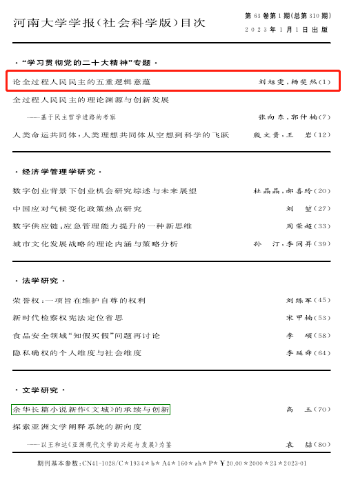 外围买球app官网教师刘旭雯在《河南大学学报(社会科学版)》(2023年第1期)上发表理论文章《论全过程人民民主的五重逻辑意蕴》。