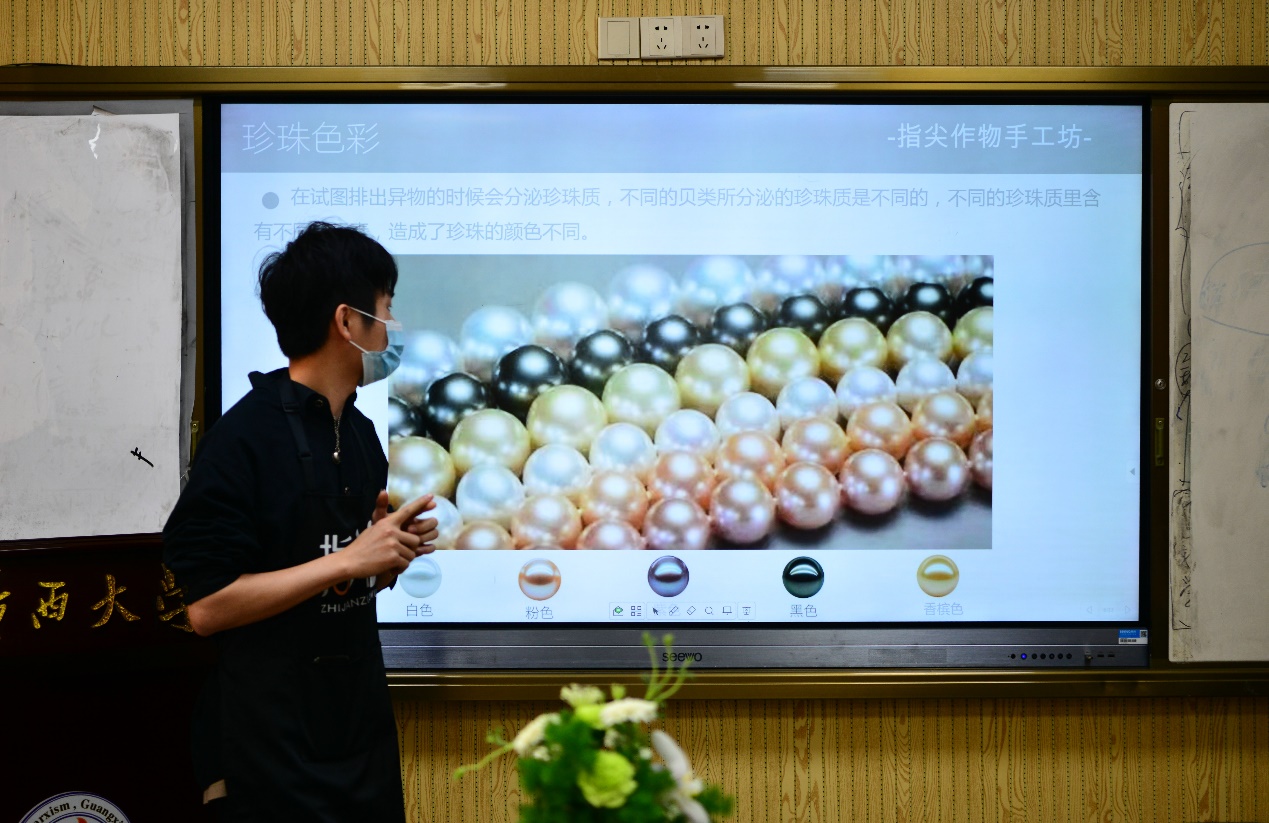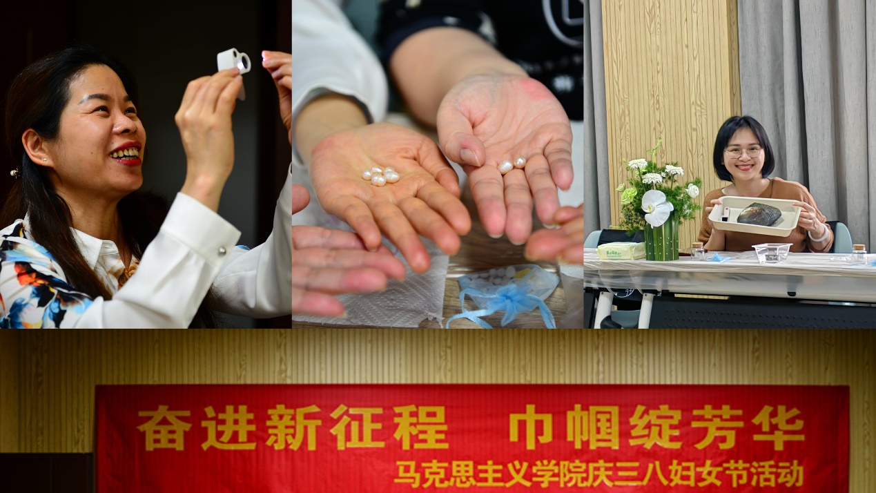 活动设置了珍珠文化科普、挑选蚌壳、开蚌取珠等环节。在专业团队的指导下,女教师们首先了解了珍珠从哪里来、河蚌的年龄要怎么判断的相关问题,并在指导老师的手把手教学下掌握解剖河蚌小实验的方法与技巧。随后两两一组,组成开蚌小队,亲手将珍珠蚌打开并取出珍珠,再挑选出一颗心仪之珠交于专业团队制作成耳环、项链、胸针的首饰。