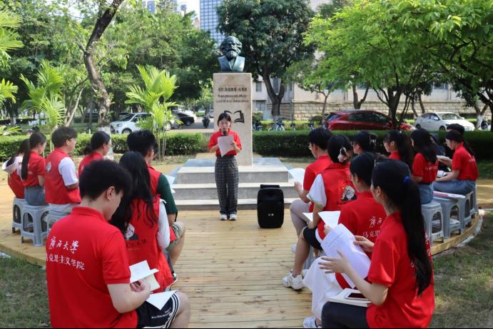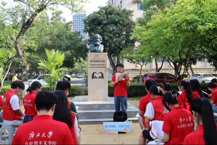 2023年5月5日是马克思诞辰205周年纪念日,为引导青年学生深入学习马克思主义理论,培育青年学生“爱读书、读好书、善读书”的良好学习习惯,实现学科素养的丰盈和阅读视野的开拓,5月5日下午,外围买球app官网研究生会团支部在“与马克思一起读书”文化广场开展“‘研’读经典,‘书’写青春”主题团日活动。本次主题团日活动的阅读书目为《论党的青年工作》,活动由研究生会成员李佳乐主持。