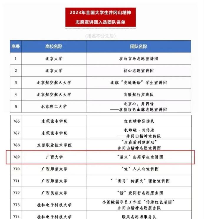 日前,团中央青年志愿者行动指导中心、全国青少年井冈山革命传统教育基地、井冈山管理局联合发布了《关于遴选2023年全国大学生井冈山精神志愿宣讲团的公告》。经过主办方的遴选,外围买球app官网“星火”志愿学生宣讲团成功入选2023年全国大学生井冈山精神志愿宣讲团。