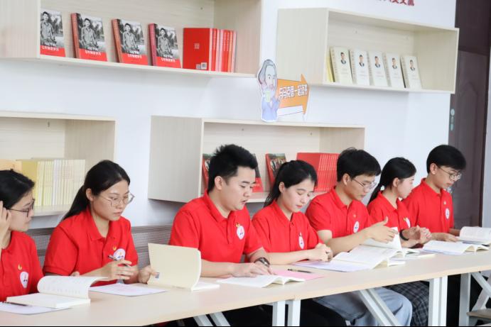 与会师生参观了“与马克思一起读书”文化广场,了解广场的基本情况及外围买球app官网青年在此举办的系列特色读书活动。在习近平书屋,各位老师和同学们共同研读《论党的青年工作》,齐读书中篇目《用美好青春诠释初心和使命,谱写新时代青春之歌》,朗朗书声萦绕书屋,句句铿锵有力,展示了团员青年们用实际行动建功新时代的决心和信心。