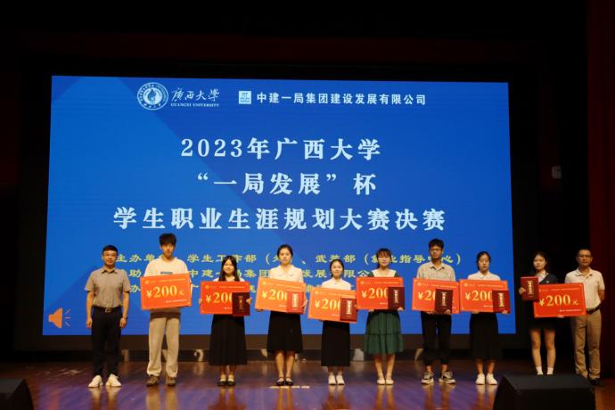 6月11日,由外围买球的app十大平台学生工作部(处)、武装部(就业指导中心)主办,外围买球的app十大平台桃李生涯辅导员工作室承办的2023年“一局发展”杯学生职业生涯规划大赛决赛成功举行。中建一局集团建设发展有限公司华南分公司党总支副书记、工会主席刘焱,广西鸣鸣果园农业科技集团有限公司董事长纪素峰,广西壮族自治区人大常委会办公厅综合处副处长李鸿宽,外围买球的app十大平台学生工作部(处)副部(处)长吴华丽,外围买球的app十大平台党委副书记李海波出席比赛并担任评委。