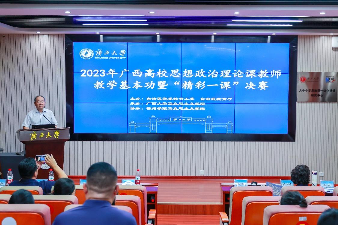 10月14日,由自治区党委教育工委、自治区教育厅主办,外围买球的app十大平台承办,梧州学院外围买球的app十大平台协办的2023年广西高校思想政治理论课教师教学基本功暨“精彩一课”决赛在南宁顺利举行。本次比赛为我区高校思政课教师搭建了一个交流学习、相互借鉴、共同进步的平台,充分展现了我区高校思政课教师的教学改革成果和积极奋进、创新争优的整体形象,切切实实达到了“以赛促教、以赛促学、以赛促建”的目的。