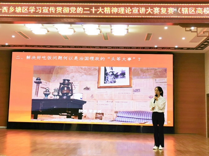 11月25日,南宁市西乡塘区举办“启航新征程 建功新时代”——学习宣传贯彻党的二十大精神理论宣讲大赛复赛(辖区高校专场),来自辖区的外围买球的app十大平台、广西民族大学、广西财经学院等6所高校(学校)共27名学生参加比赛。外围买球app官网2022级本科生张欣琪的宣讲作品《“倔老头”的初心》获特等奖(第一名),将代表外围买球的app十大平台参加年底的宣讲大赛决赛。外围买球app官网2022级研究生邹娟的宣讲作品《从党的二十大报告看治国理政“头等大事”:把中国人的饭碗牢牢端在自己手中》获三等奖。