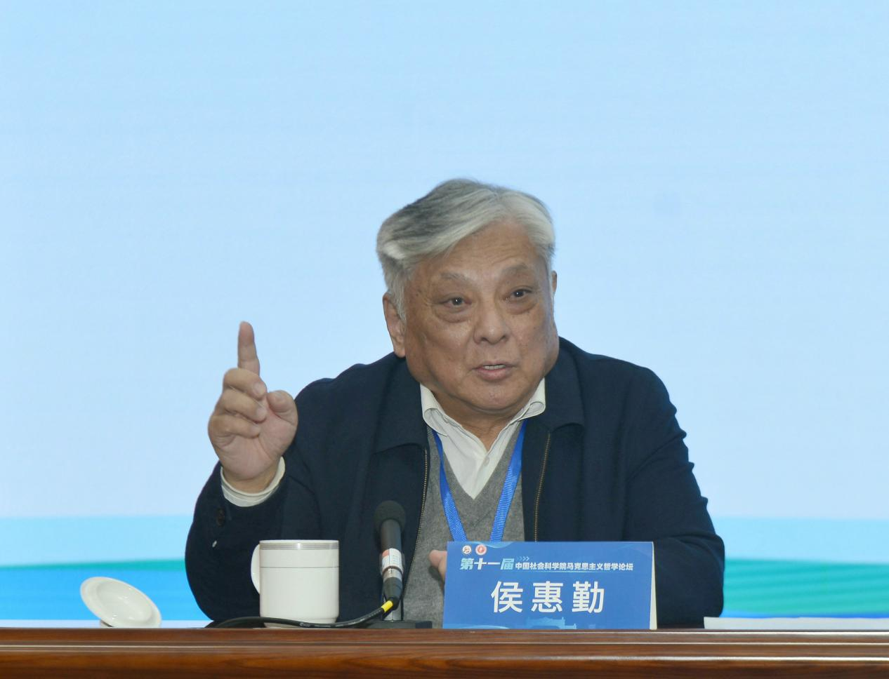 中国社会科学院马克思主义哲学论坛主席、国家文化安全与意识形态建设研究中心主任,中国历史唯物主义学会会长侯惠勤作大会主旨报告。侯惠勤教授指出,首先,马克思主义哲学创新的特点是守正创新,是在应用中创新,包括两个方面,一是在应用马克思主义世界观方法论解释和解决现实问题中提出新判断,二是在新历史条件下对马克思主义世界观方法论提出新认识、新阐发。其次,马克思主义哲学创新的路径是一脉相承和与时俱进的统一,马克思主义是辩证统一的整体,既包括原创形态,也包括随着时代发展而不断发展的创新形态。再次,马克思主义哲学创新的内容是马克思主义世界观方法论的坚持运用,创新不是颠覆式的,不是对马克思主义基本范式、基本原则所进行的所谓创新,不能抹杀马克思主义唯物主义立场和原则。侯惠勤教授认为,马克思主义世界观方法论之所以是科学信仰体系,就在于它把世界的终极存在问题和人类生存的终极关怀问题这些所谓的“形而上”纳入了科学的视野。他强调,习近平马克思主义哲学世界观与方法论的创新表现在把人民至上提升为普遍的自觉的历史观原则;指明了超越片面的物化的个人主体,建设全面发展的联合起来的自由人共同体方向。中国式现代化是马克思世界观方法论的坚持运用,是一种自觉的现代化,是中国共产党领导的、有先进理论指导的自觉的现代化,充分体现了历史自信和历史主动。