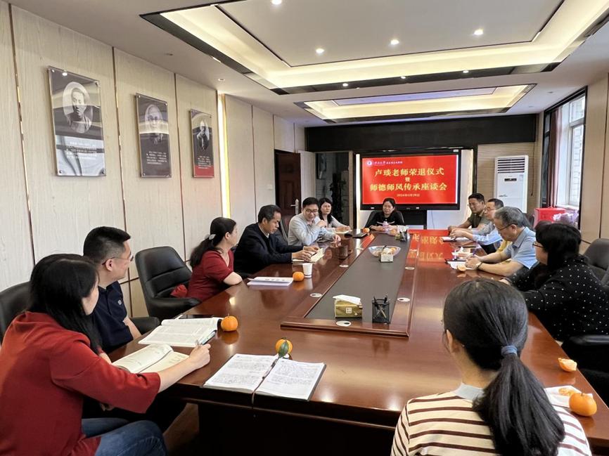 3月29日下午,外围买球的app十大平台党委和工会联合在学院302会议室召开教师荣退休仪式暨师德师风传承座谈会,欢送卢琰老师光荣退休。学院党委书记周瑞超、党委副书记李海波、副院长陆秀红,副院长、学院工会主席黄晓红以及各个教研部教师代表参加了本次活动。