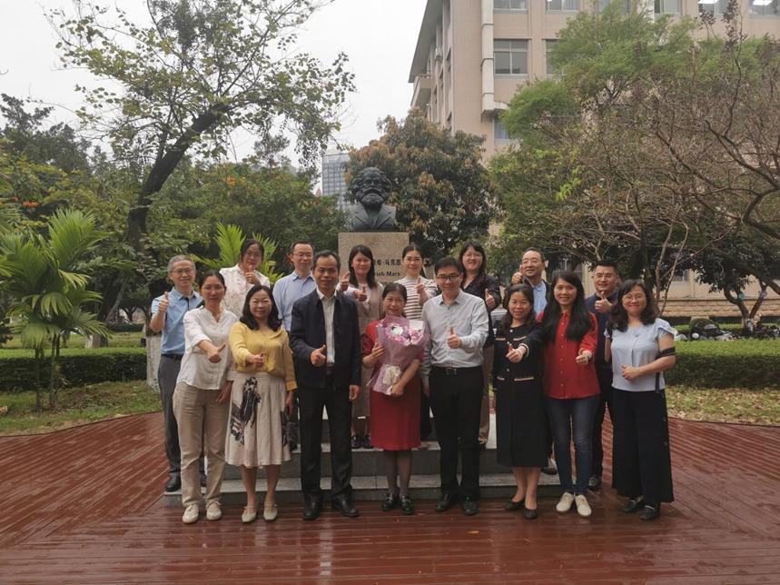 学院党委书记周瑞超代表学院为卢琰老师献上鲜花和纪念品,并合影留念。