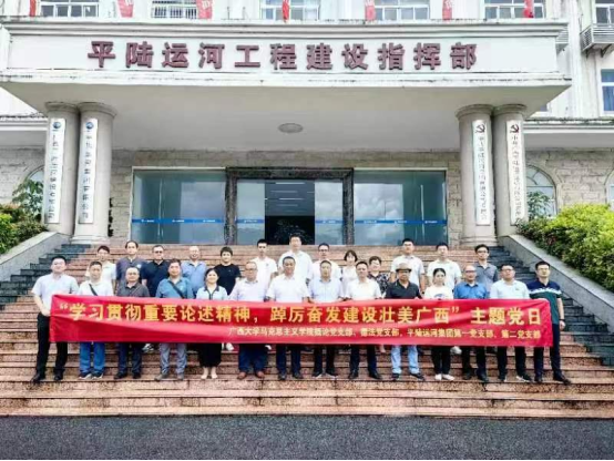 6月28日,外围买球的app十大平台肖安宝副院长率概论课党支部和德法课党支部赴钦州与平陆运河集团有限公司第一、第二党支部共同开展了“学习贯彻重要论述精神,踔厉奋发建设壮美广西”主题党日活动。全体党员参观了平陆运河青年枢纽施工现场,听取了现场工作人员的详细讲解。随后来到钦州平陆运河建设工程指挥部进行参观学习,听取有关领导介绍了平陆运河的整个设计和建设情况。最后,各支部书记带领大家一起学习《中国共产党纪律处分条例》,概论课党支部书记杨勇做了“深入学习《中国共产党纪律处分条例》”的专题纪律党课,德法课党支部梅洁领学《中国共产党纪律处分条例》相关条款,肖安宝副院长做了全面总结。