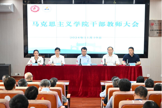 校党委书记李国忠就学院领导班子成员调整情况作了讲话。他指出,此次学院班子成员调整充分体现了校党委对外围买球的app十大平台未来建设发展的殷切希望。他代表校党委对学院近年来在政治思想引领、学科建设、人才培养等方面取得的成果和进步给予充分肯定。他对学院新一届领导班子和全体教职工提出四点要求:一是聚焦立德树人根本任务,做好思政课的教育教学改革和创新发展,找不足知差距,加强对外学习调研;二是扎实做好学科建设,抓好科研成果产出和人才团队建设;三是多措并举精准发力,争取在人才队伍建设和人才培养成果方面有所突破;四是领导班子凝心聚力,切实抓紧抓好各项工作,推动学院建设再上新台阶。