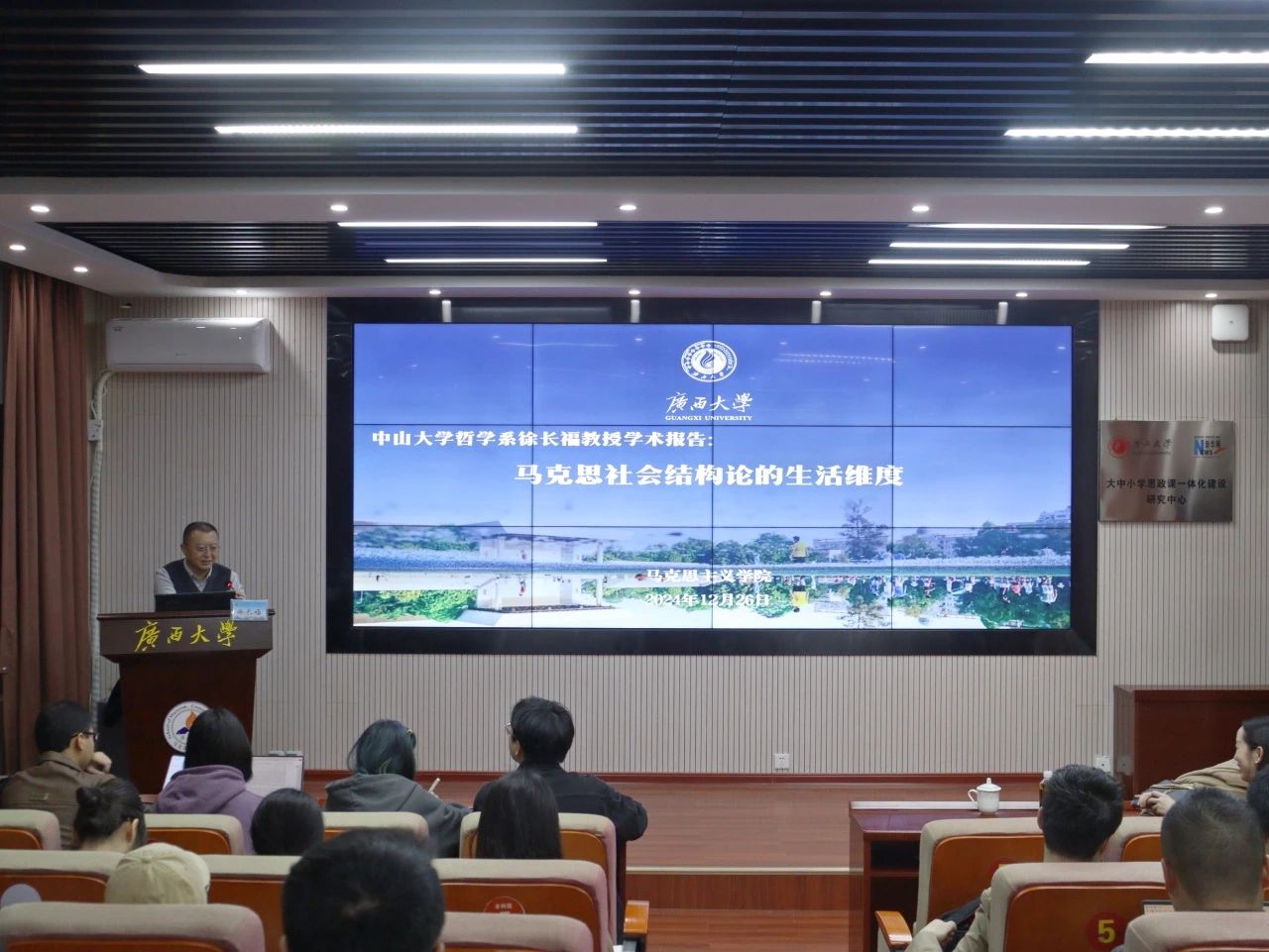 12月26日,中山大学哲学系教授、博士生导师徐长福应邀来外围买球app官网作了题为《马克思社会结构论的生活维度》的学术讲座。本次讲座由外围买球app官网黄璇教授主持,学院师生代表近百人到场聆听。