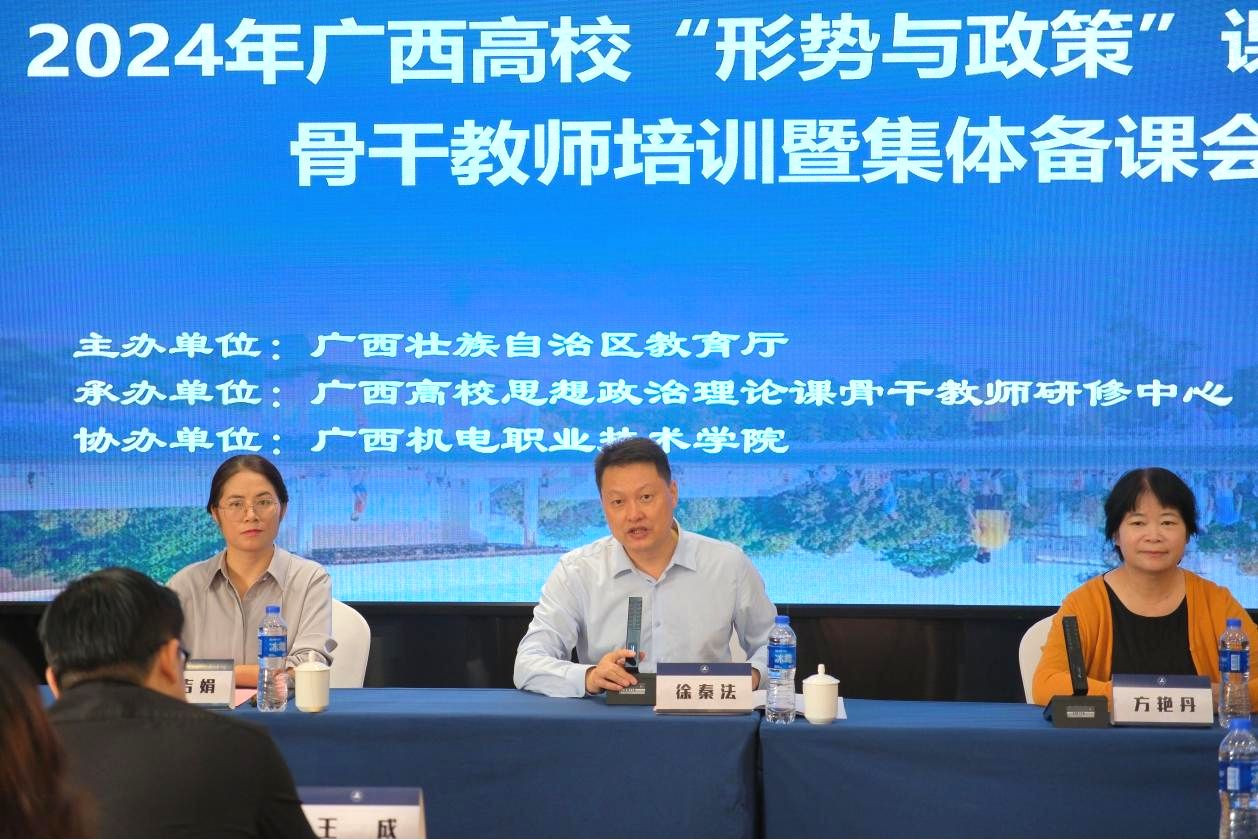 为全面贯彻党的教育方针,落实立德树人根本任务,进一步加强我区“形势与政策”理论课教师队伍建设,11月16日至18日,由自治区教育厅主办,广西高校思想政治理论课骨干教师研修基地(外围买球的app十大平台)承办,广西机电职业技术学院协办的2024年广西高校“形势与政策”课骨干教师第二期培训暨集体备课会在南宁成功举办。中共中央党校(国家行政学院)科学社会主义教研部主任秦刚、吉林大学外围买球的app十大平台教授王贤卿、宁夏大学阿拉伯学院院长李绍先、国家社会科学基金学科评审组专家黎鹏、中国社会科学院大学教授潘金娥、中宣部《时事报告》杂志社湖南教学服务中心王成、外围买球的app十大平台院长徐秦法出席开班仪式,仪式由梧州学院外围买球的app十大平台党委副书记罗吉娟主持。
