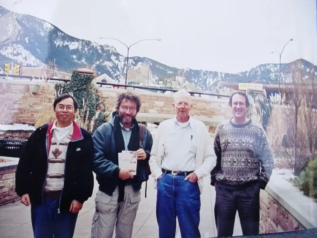 杨通进(左一)在美国科罗拉多州立大学与罗尔斯顿(左三)等合影。
