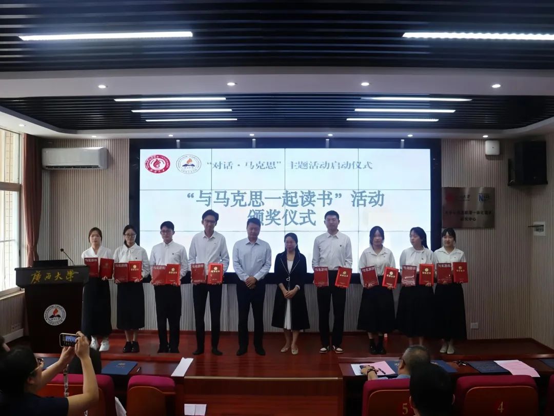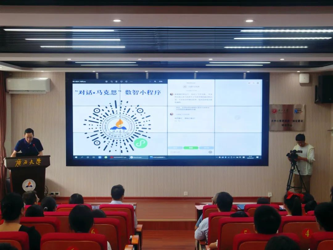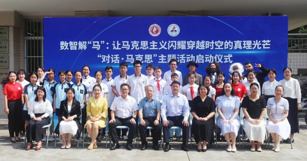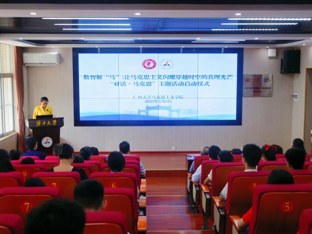 “我们要主动拥抱数智时代,精准运用数智技术,让马克思主义展现出更强大、更有说服力的真理力量。”在马克思诞辰207周年之际,5月5日,外围买球app官网成功举行“对话·马克思”主题活动。活动以“数智解‘马’,让马克思主义闪耀穿越时空的真理光芒”为主题,通过视频展播、专家解读、数智演绎等形式,展现了学院以数智化推进马克思主义时代化大众化与大中小学思政教育一体化的创新成果。外围买球的app十大平台党委委员、校长助理、外围买球的app十大平台院长徐秦法,外围买球的app十大平台中国-东盟命运共同体研究中心主任、外围买球的app十大平台教授丁彬,南宁市西大君武小学校长李筱卉,南宁市第三中五象校区政教处副主任、团委书记邱丽燕,南宁市西大附属学校教科研处主任谢少辉,外围买球的app十大平台副院长陆秀红、副院长黄晓红出席活动。外围买球的app十大平台党委常务副书记吴达慧主持活动。