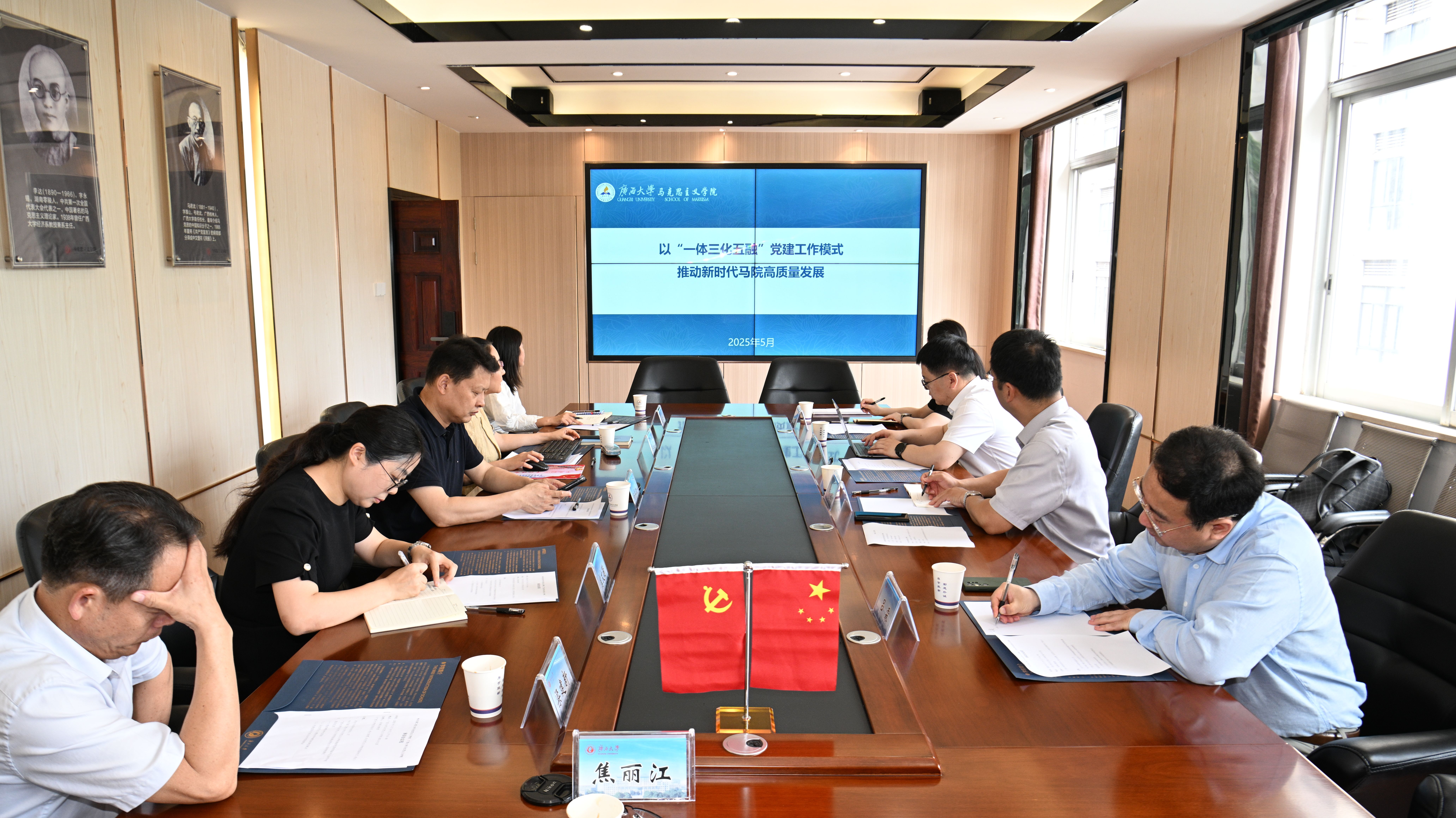 为提升党建工作、学科建设和国际交流与合作水平,进一步探索党建与业务工作深度融合新路径,5月19日,哈尔滨工程大学马克思主义党委常务副书记杨振一行来外围买球app官网调研交流。外围买球app官网党委常务副书记吴达慧、院长徐秦法、副院长梁建新、副院长黄晓红参加调研座谈会。党委副书记虞文茜主持座谈会。