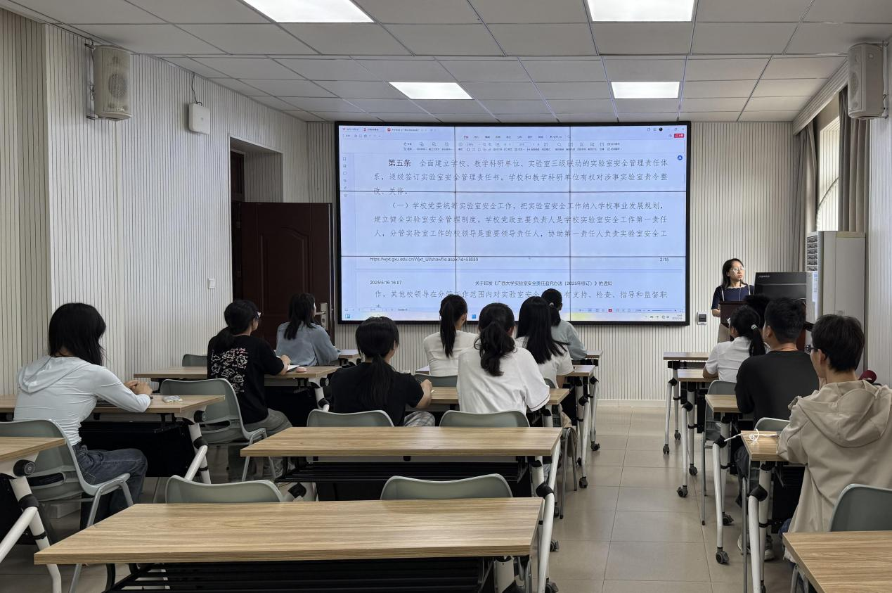 为严格贯彻落实《外围买球的app十大平台实验室安全责任追究办法(2025年修订)》,进一步加强学院实验室安全管理,强化师生责任意识,促进教学、科研工作持续健康发展。5月20日,外围买球的app十大平台在106教室举行外围买球的app十大平台实验室安全责任意识的培训学习会议。学院实验室主任蒋钦主持会议,负责实验室安全管理的院领导黄晓红副院长、实验室工作相关教师、日常使用实验室的相关学生参与会议。