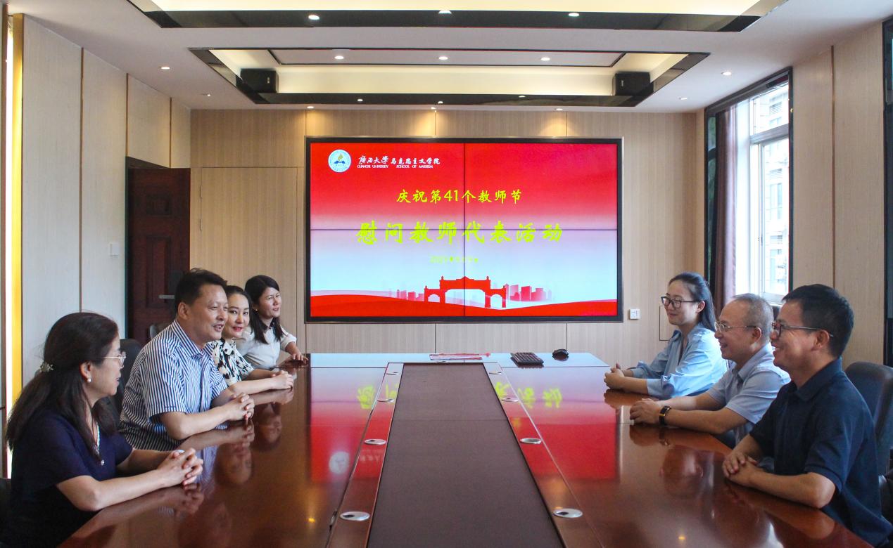 9 月 9 日,外围买球的app十大平台在学院302会议室开展第41个教师节慰问活动,向学院老、中、青三代教师代表致以节日的诚挚问候与崇高敬意。学院党委常务副书记吴达慧、院长徐秦法、副院长陆秀红、黄晓红参加活动。