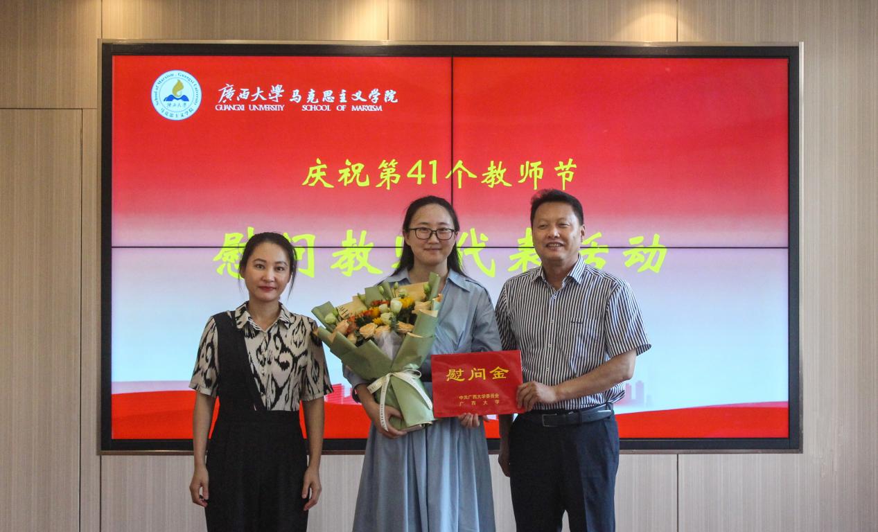 学院领导为到场的教师代表献上鲜花并表示祝贺,感谢他们长期以来在思想政治理论课教学、马克思主义理论研究宣传、培养担当民族复兴大任的时代新人等方面作出的突出贡献。表示教师是立教之本、兴院之源。学院始终将教师队伍建设作为基础性工作,努力为教师们创造更好的工作环境和发展平台,将继续加大对教师发展的支持力度,切实做好服务保障,让老师们能够安心从教、热心从教、舒心从教。