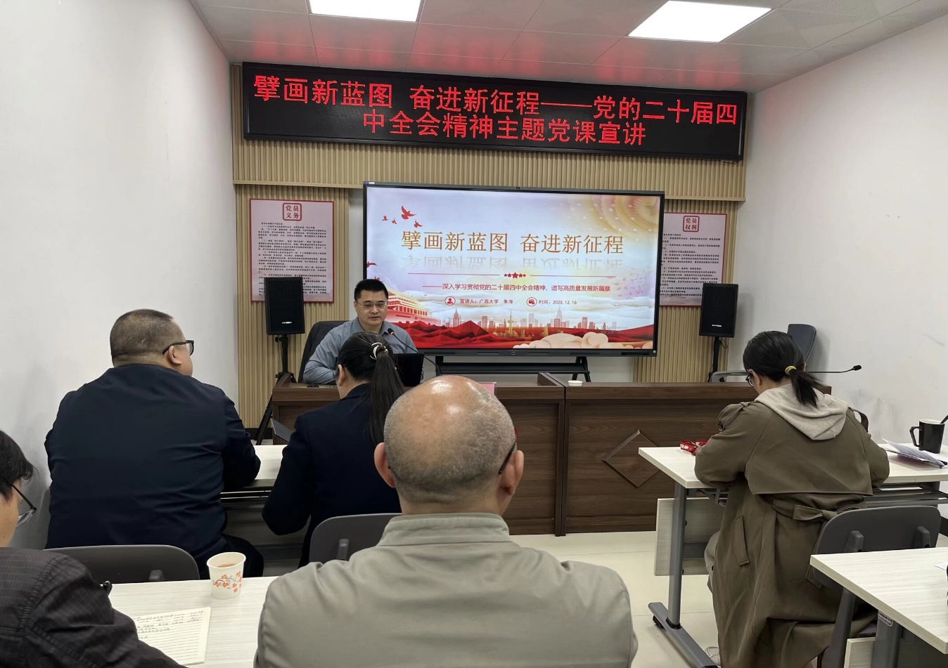 2025年12月16日上午,概论党支部支委会一行5人来到南宁市西乡塘区西耐路社区进行了理论宣讲与支部共建活动。概论党支部一行受到了西耐路社区委员会书记吴海燕等同志的热烈欢迎。