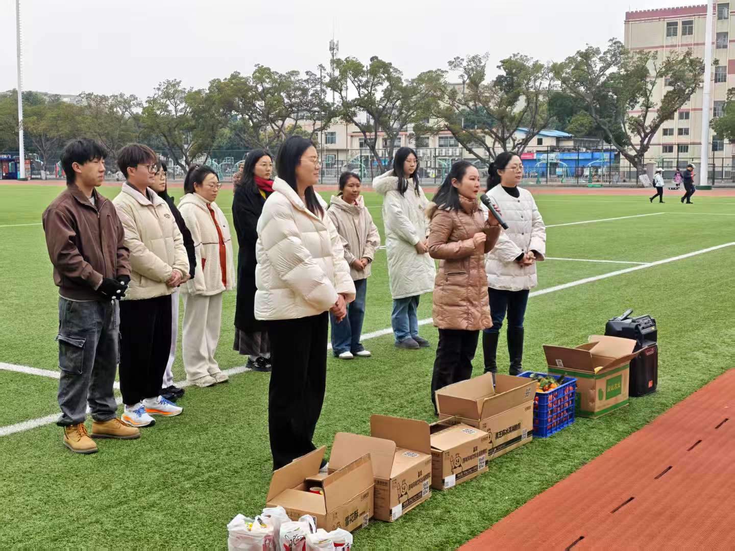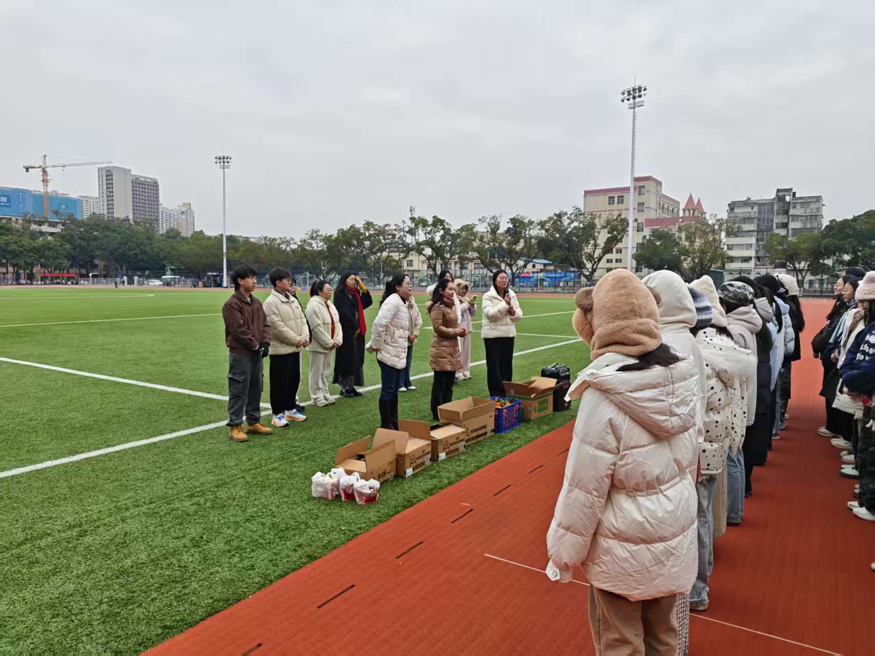 寒风渐起,冬意正浓。为传递学院的关怀与温暖,进一步鼓舞军训士气,1月23日,外围买球app官网党委常务副书记吴达慧、党委副书记虞文茜带队,团委书记田春及学生干部代表共同前往东校园足球场,看望与慰问2025级军训学子。