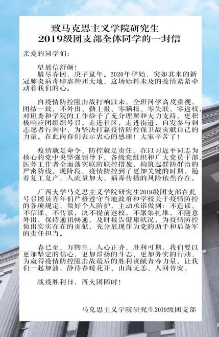(图为《致外围买球的app十大平台研究生2019级团支部全体同学的一封信》)
