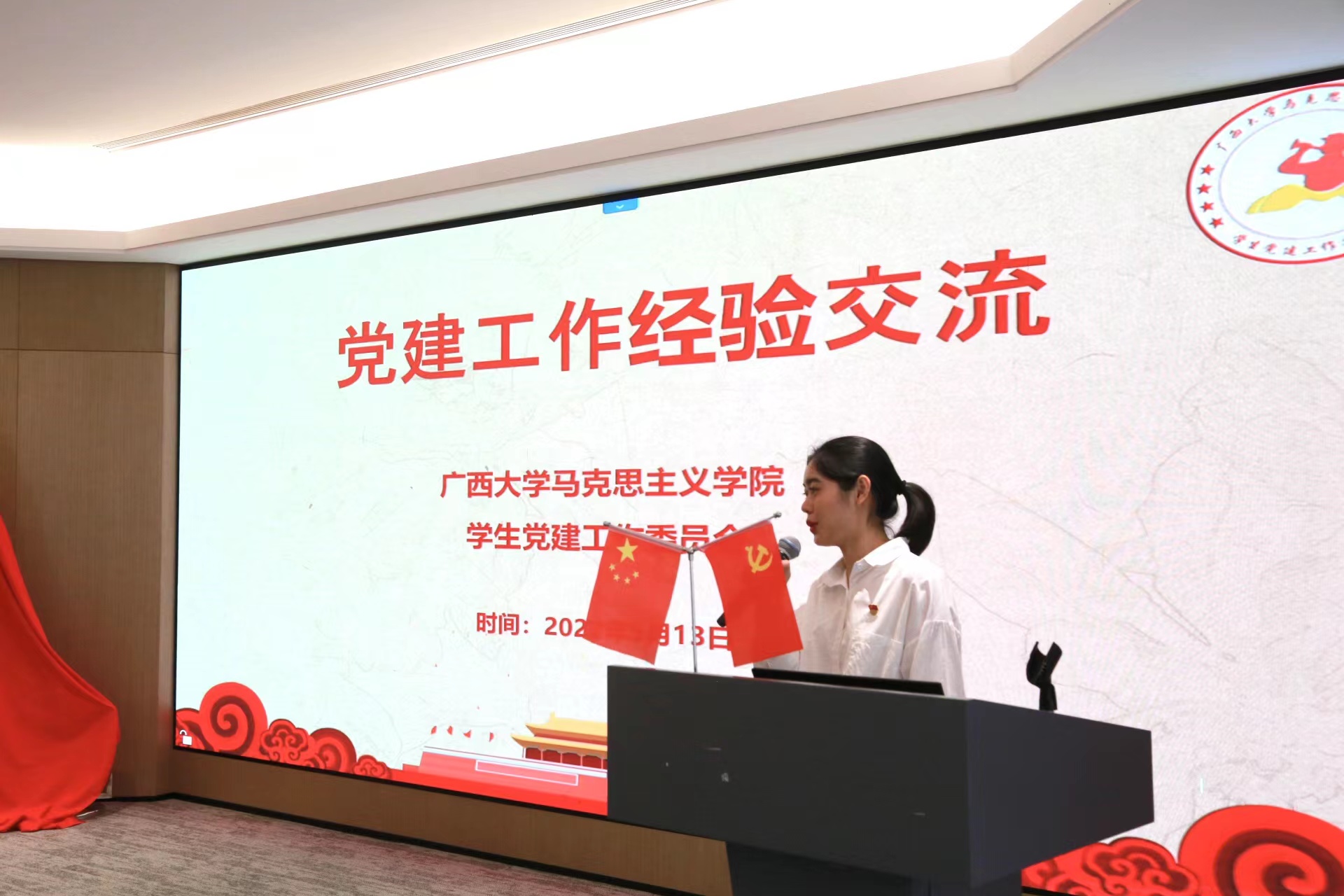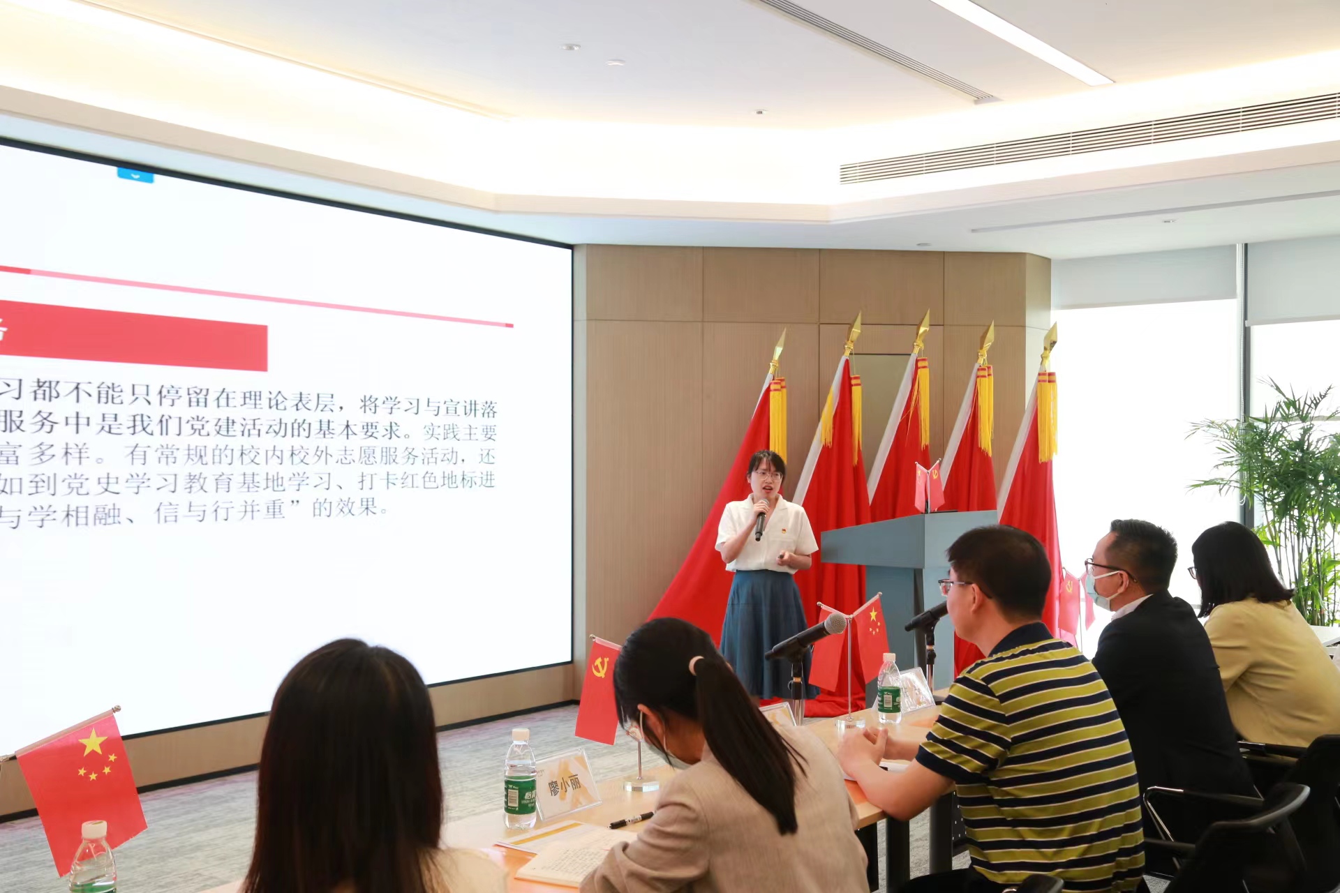 外围买球app官网唯理社党支部组织委员刘洁、党建会主任李梦也依次分享了外围买球app官网党建工作的特色、经验和成果,华润置地广西公司团支部书记李敏向与会师生介绍了华润的发展历史、党建文化和业务板块及在建项目。