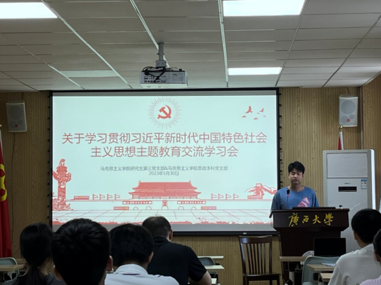 为深入贯彻落实习近平新时代中国特色社会主义思想,强化理论武装、筑牢思想根基,使支部党员进一步深刻领悟“两个确立”的决定性意义,增强“四个意识”、坚定“四个自信”、做到“两个维护”,5月30日下午,外围买球app官网研究生第三党支部联合思政本科党支部在学院102教室召开了学习贯彻习近平新时代中国特色社会主义思想主题教育交流学习会,会议由研究生第三党支部副书记赵彦雪主持。