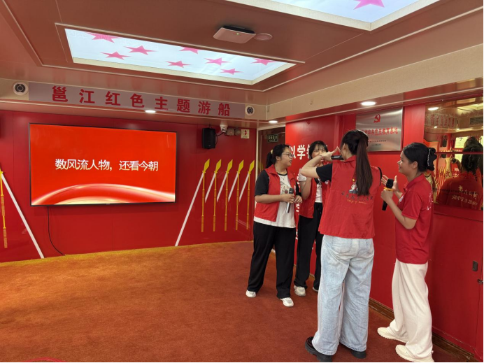 返航途中,讲解员引导大家在船内开展了微党课、党史知识竞答、党史知识你画我猜、选唱红歌等丰富多彩的互动环节,不仅考验了党员同志们的理论功底,更激发了大家传承红色基因、赓续奋斗精神的决心。