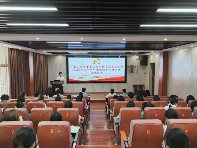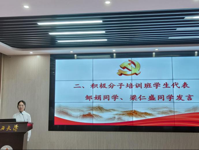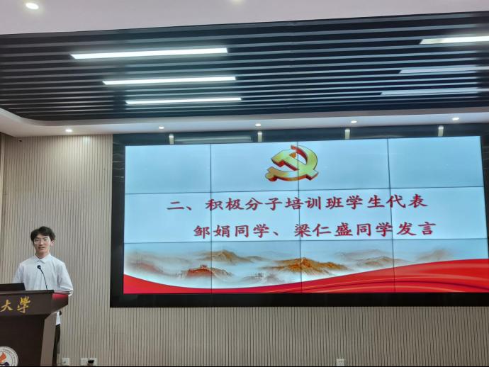 仪式伊始,入党积极分子培训班全体学员起立奏唱国歌。随后,邹娟、梁仁盛作为入党积极分子培训班学员代表分别作表态发言,他们表示,将倍加珍惜党组织提供的学习机会和学习平台,认真完成培训班规定的各项任务,在一次次学习中坚定理想信念、夯实理论基础、提高党性修养,积极向党组织靠拢,做有理想、敢担当、能吃苦、肯奋斗的新时代有为青年。