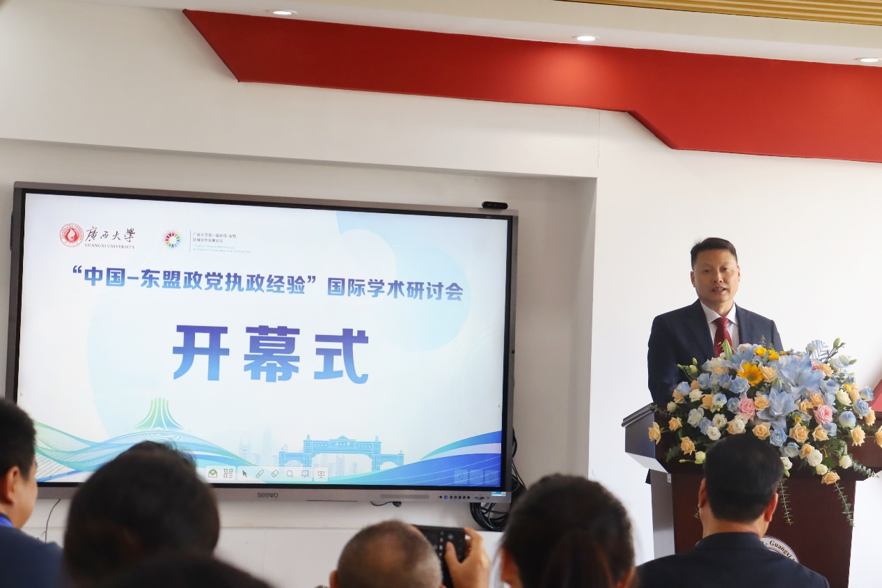 10月14日至15日,由外围买球的app十大平台主办,外围买球的app十大平台、南开大学外围买球的app十大平台、《广西社会科学》杂志社联合承办的“中国-东盟政党执政经验”国际学术研讨会在外围买球的app十大平台举行。本次研讨会是外围买球的app十大平台第一届中国—东盟区域合作发展论坛分论坛之一,旨在加强中国-东盟政党执政理论和经验的学术研究和交流,不断丰富和发展人类政治文明和政党执政经验。近百名来自越南、老挝等东盟国家以及清华大学、南开大学、外围买球的app十大平台等国内知名高校的专家学者和研究生参加会议。研讨会开幕式由外围买球的app十大平台院长徐秦法教授主持。