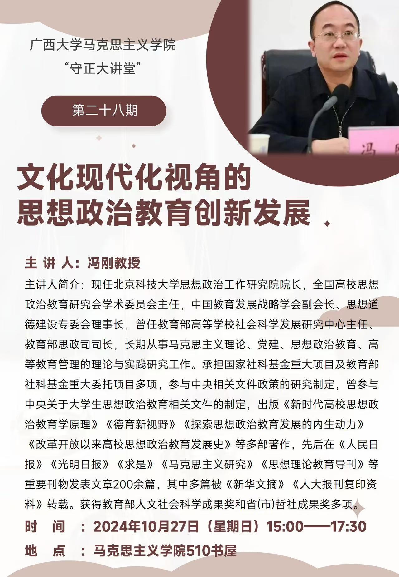 守正大讲堂 第28期||文化现代化视角的思想政治教育创新发展